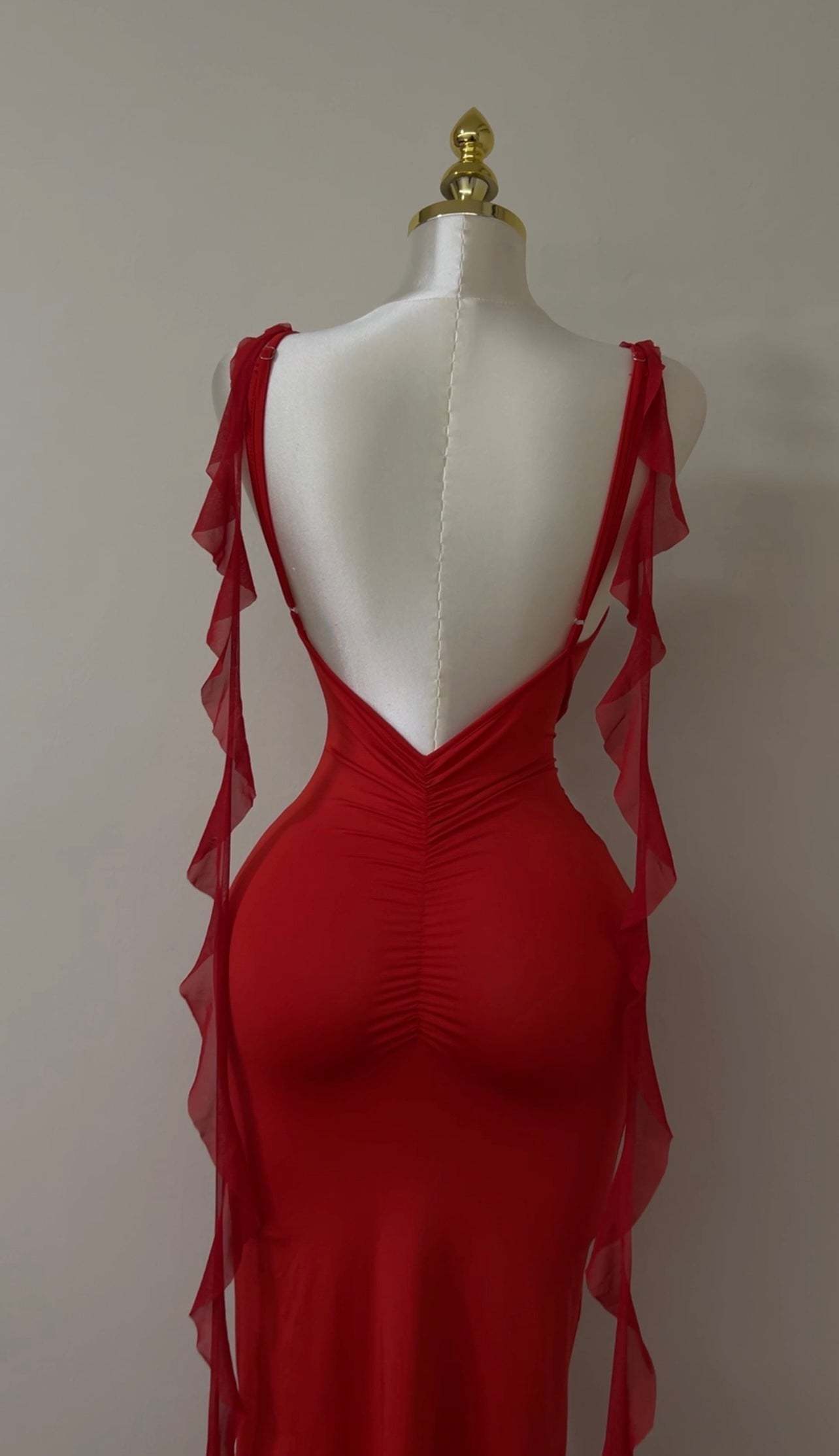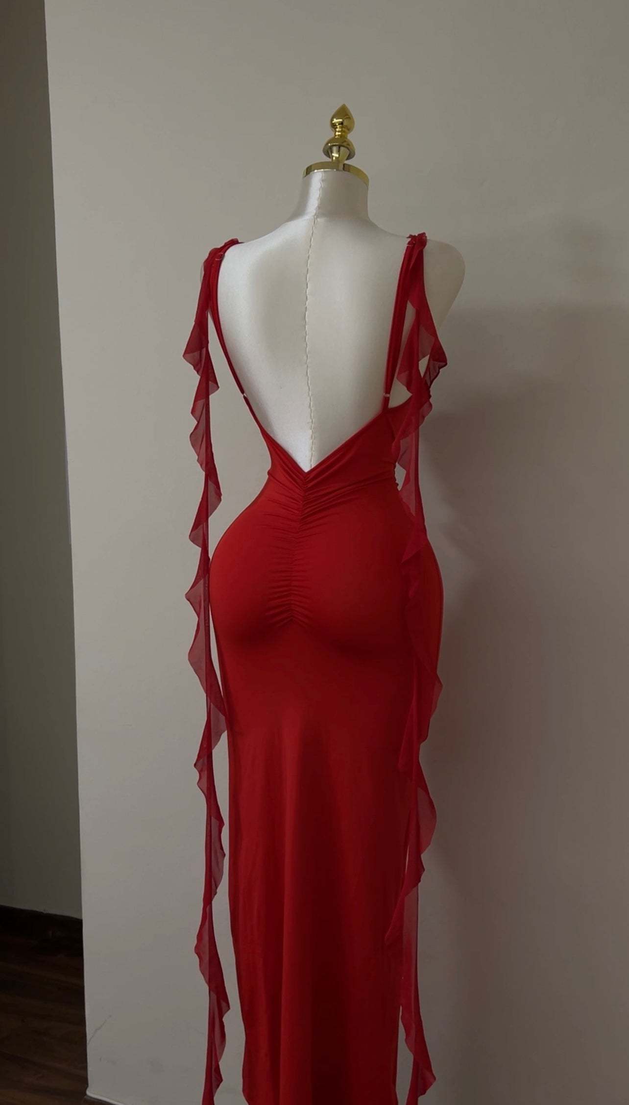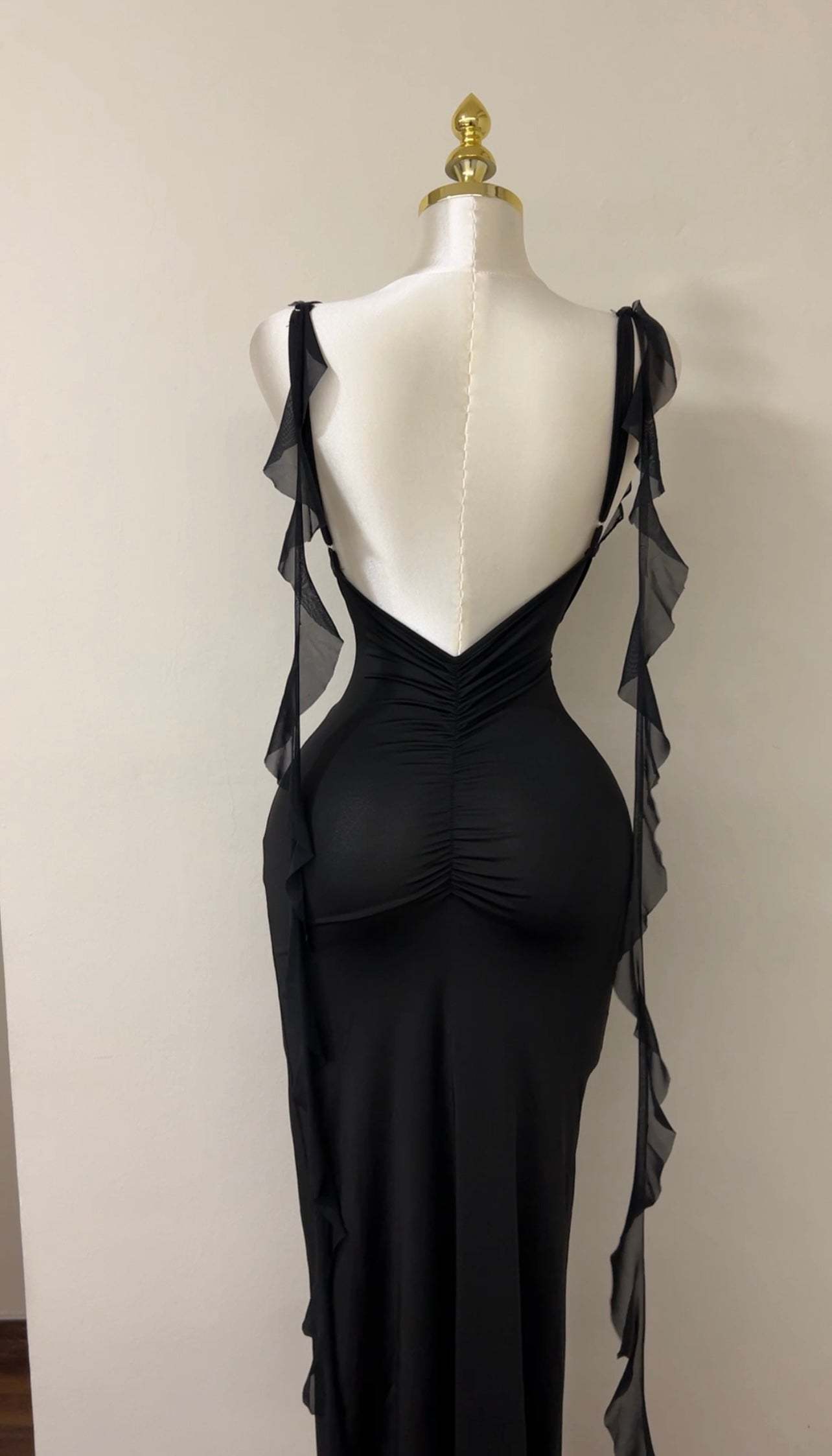 A sleek, backless dress designed to sculpt and flatter the body. Featuring slim straps and a smooth, figure-hugging silhouette, this piece blends minimal elegance with effortless allure—perfect for summer evenings and special occasions.