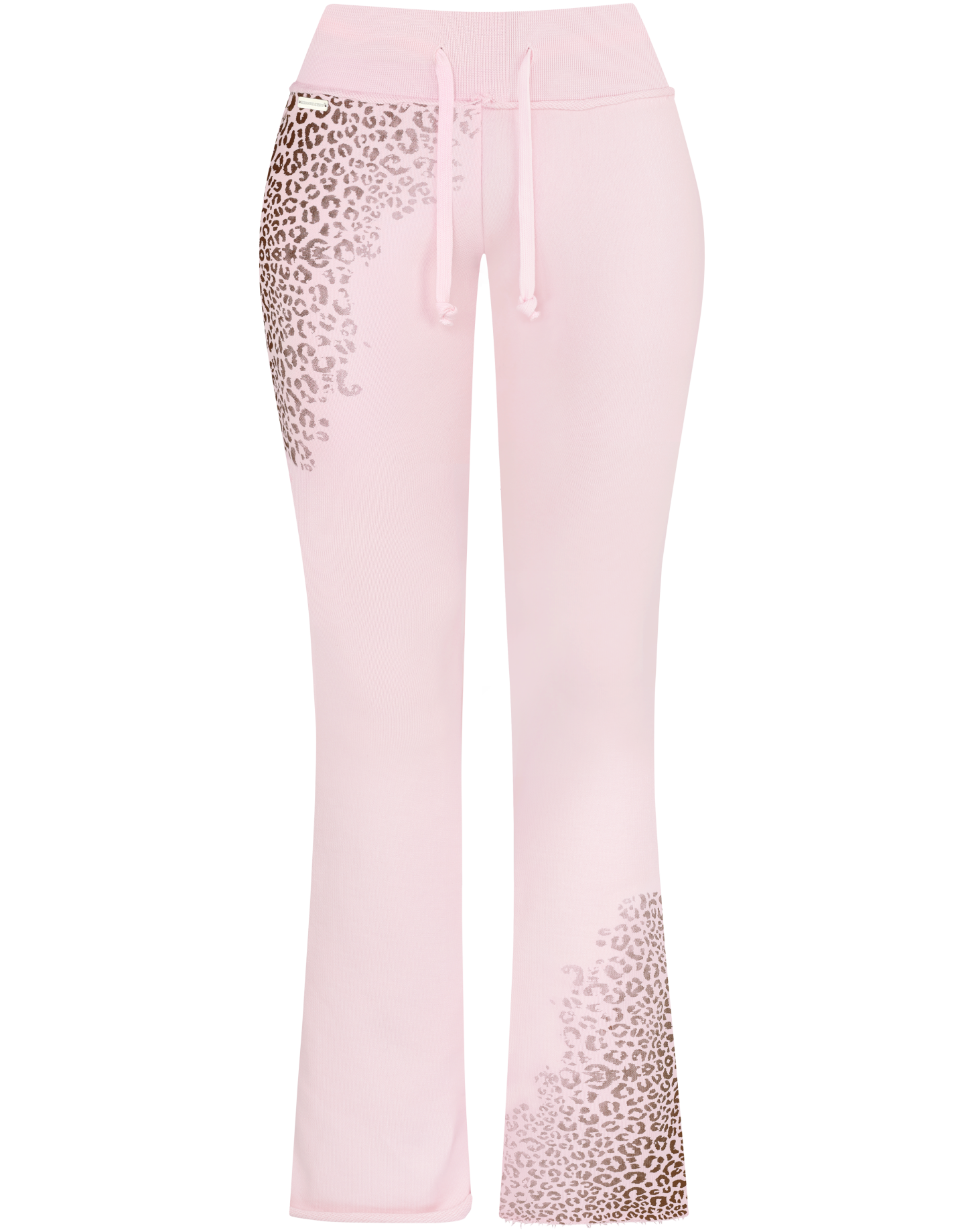 Original Design by HIDDEN CULT®. Crafted from premium 100% cotton with a flattering flared fit, these snug pants in the perfect baby pink feature a gradient dark brown cheetah pattern that wraps around the hip and lower leg. Designed for a snug, tall-friendly fit with a raw-cut hem, and a distressed waist detail. The elastic waistband with an adjustable drawcord ensures comfort while maintaining that sculpted, flattering shape.
