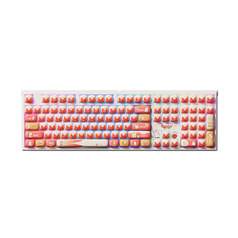 Akko’s Bunny Apple keycaps featuring Bunny icons and emojis in apple-themed colorway.
