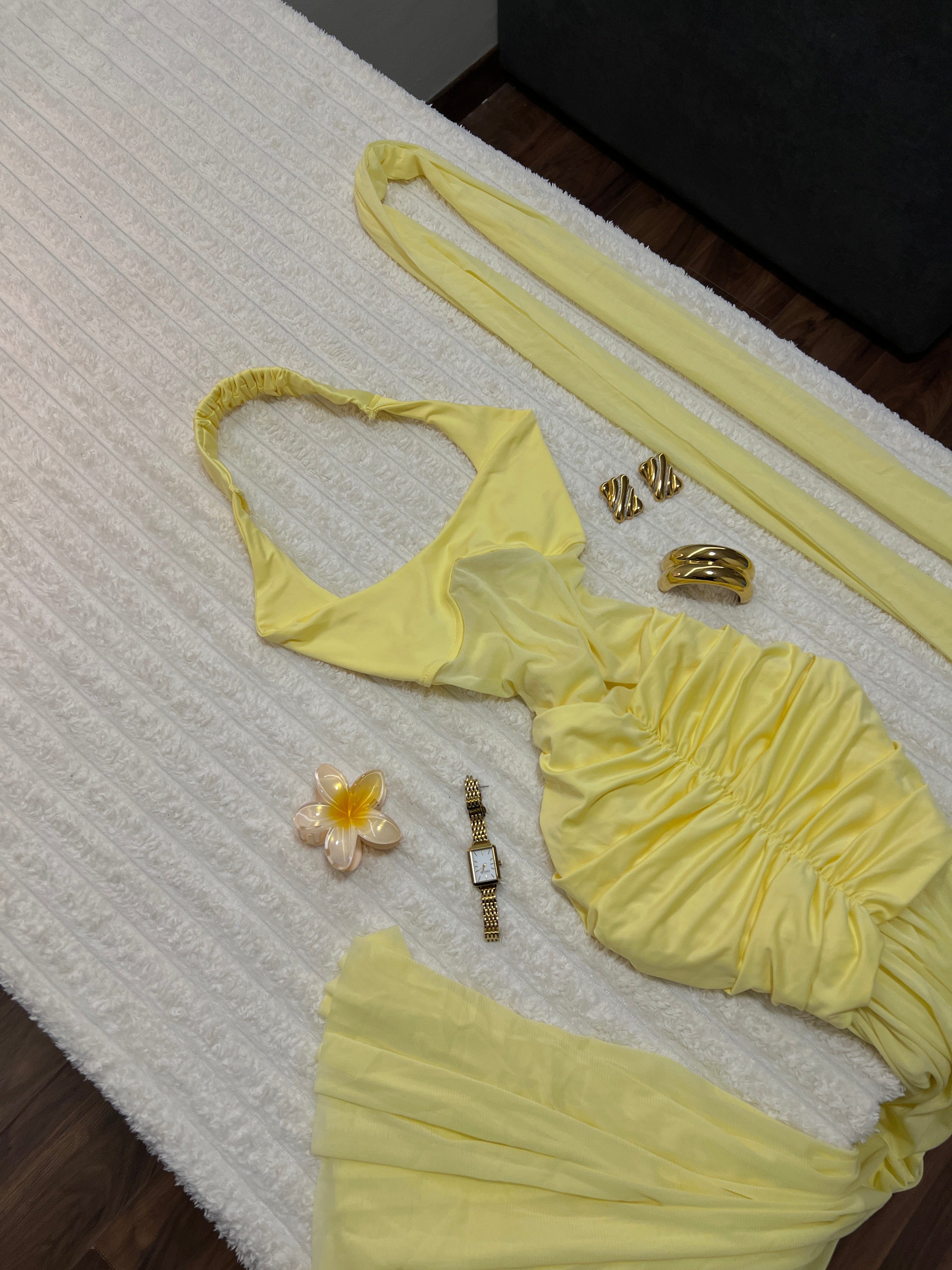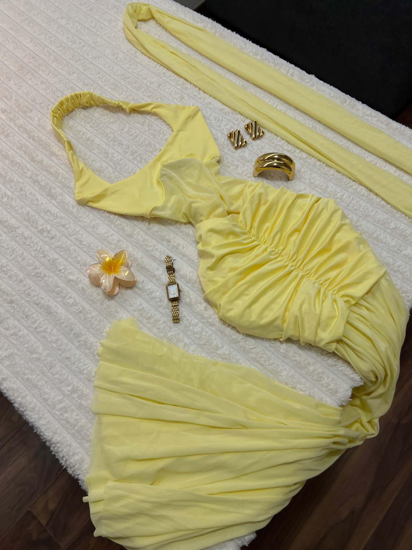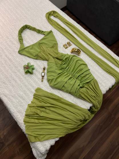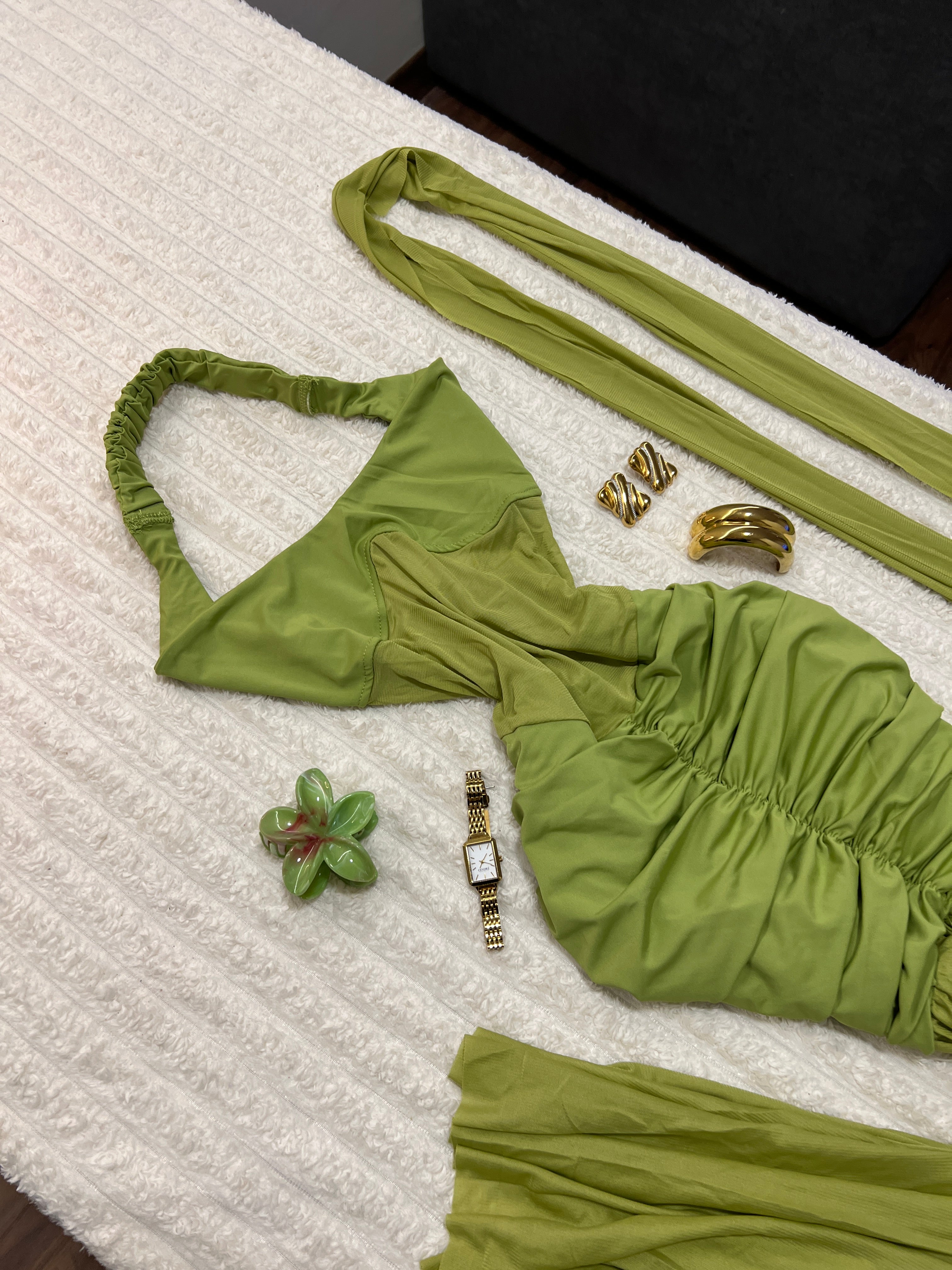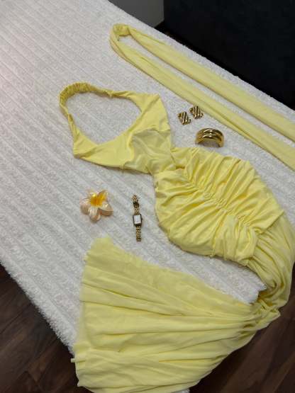 A stunning summer maxi dress designed to turn heads. Featuring halter neckline, sleeveless cut, and sheer mesh patchwork, this body-hugging silhouette enhances curves while exuding elegance. Perfect for parties, evening events, or special summer nights.