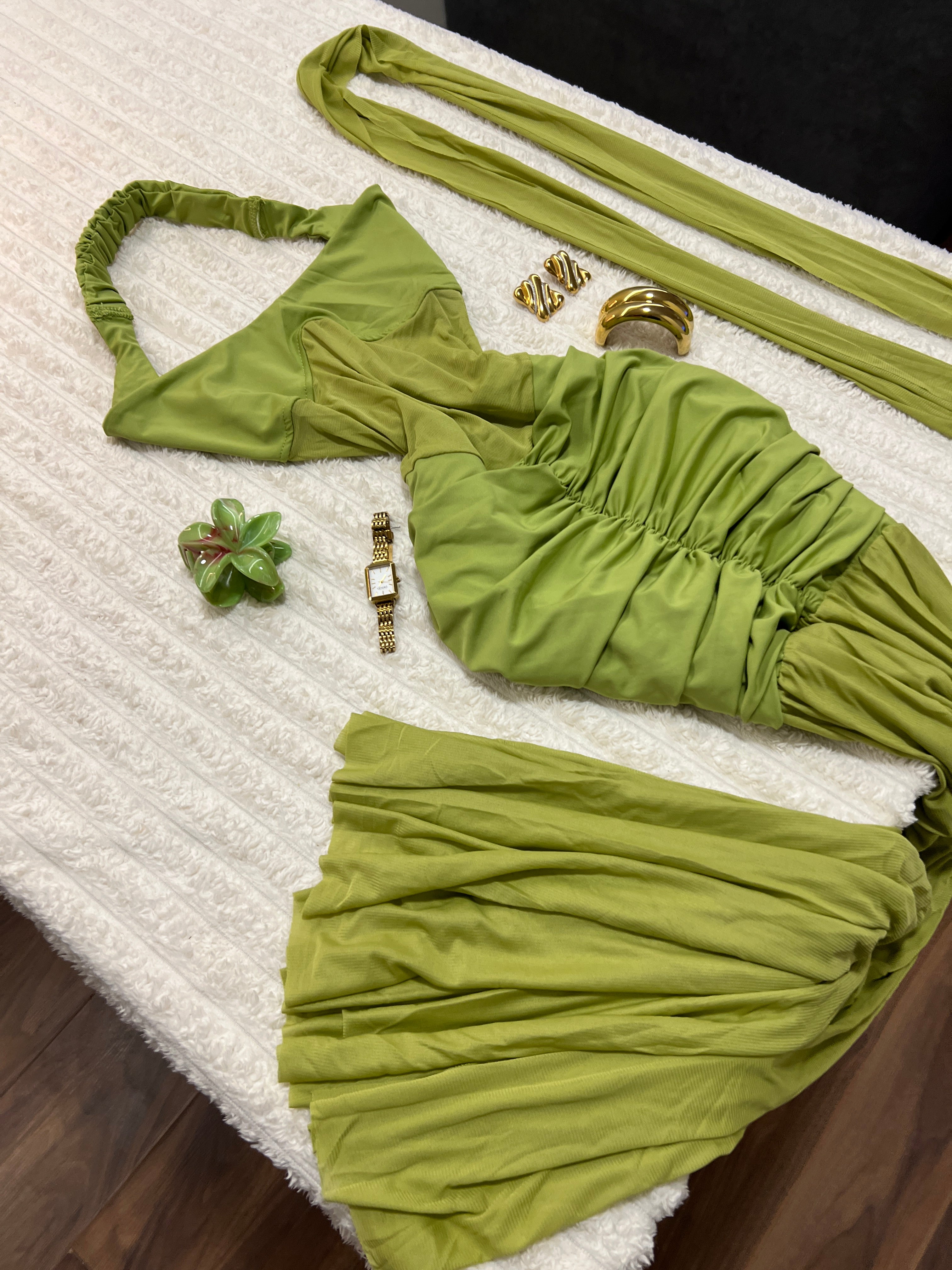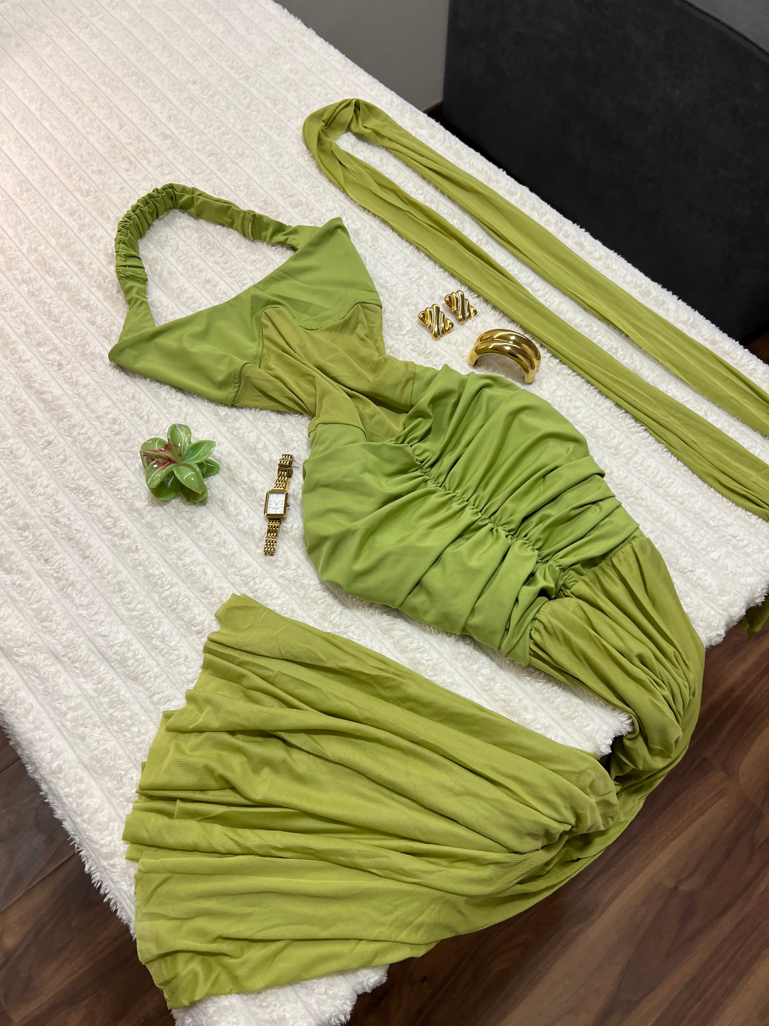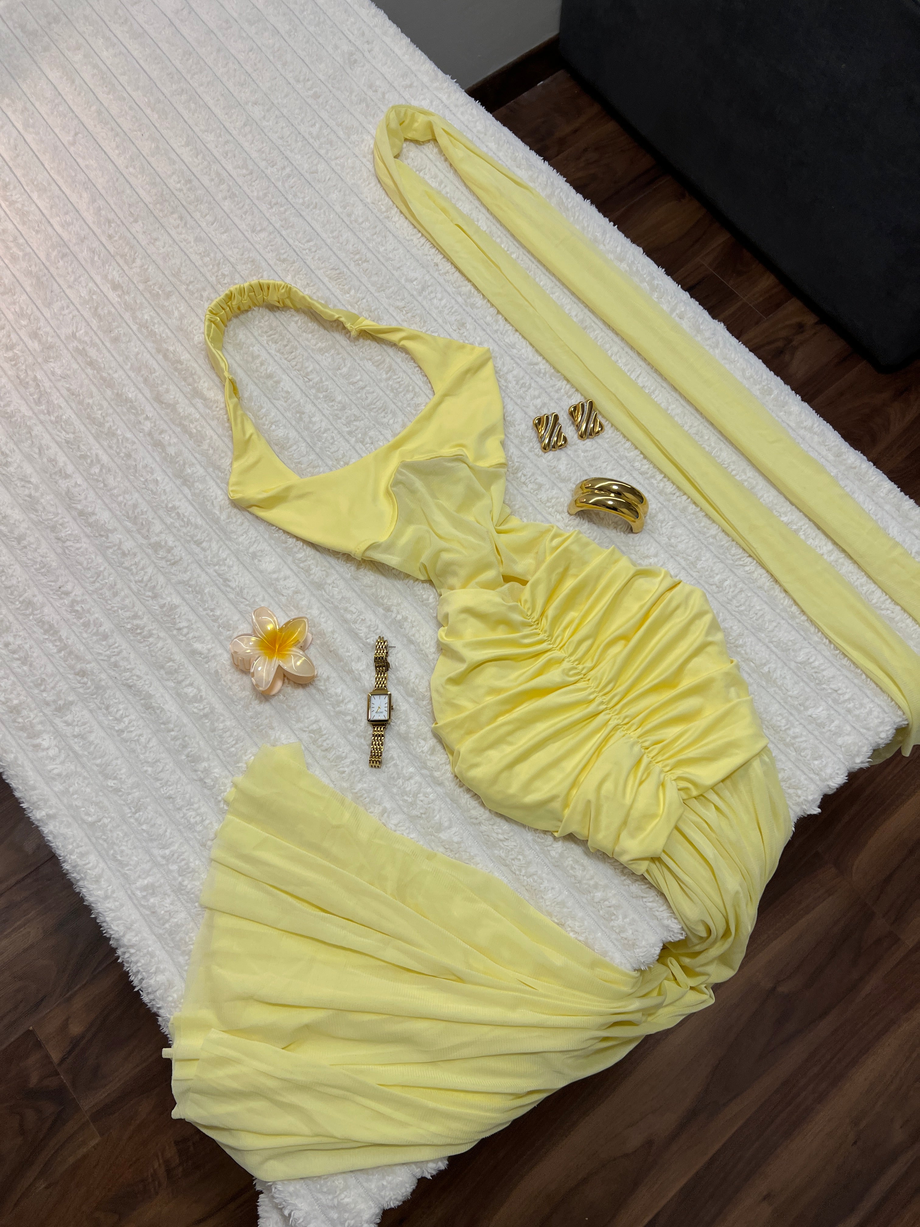 A stunning summer maxi dress designed to turn heads. Featuring halter neckline, sleeveless cut, and sheer mesh patchwork, this body-hugging silhouette enhances curves while exuding elegance. Perfect for parties, evening events, or special summer nights.