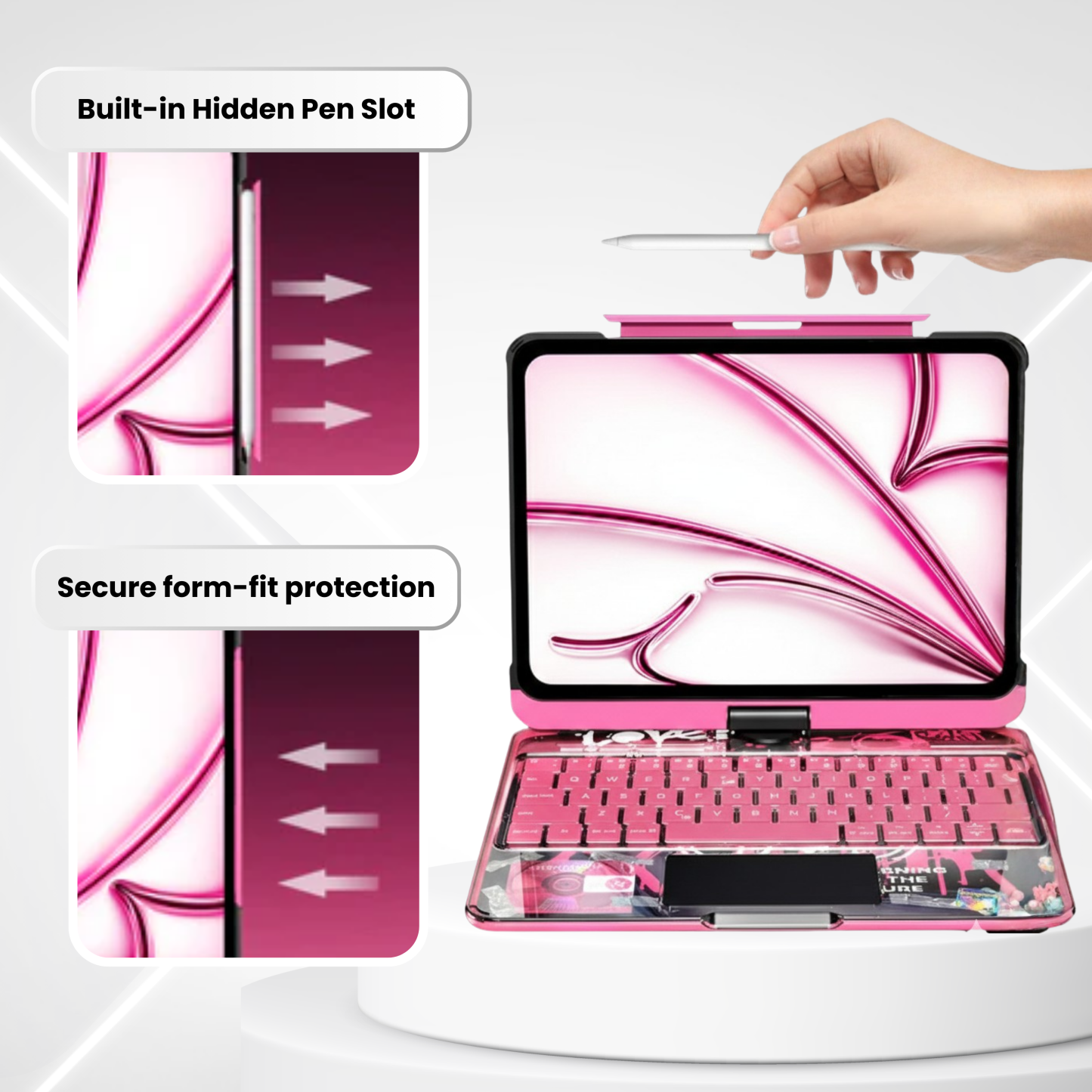 Solus Y2K Transparent Pink 360° Rotating iPad Keyboard Case