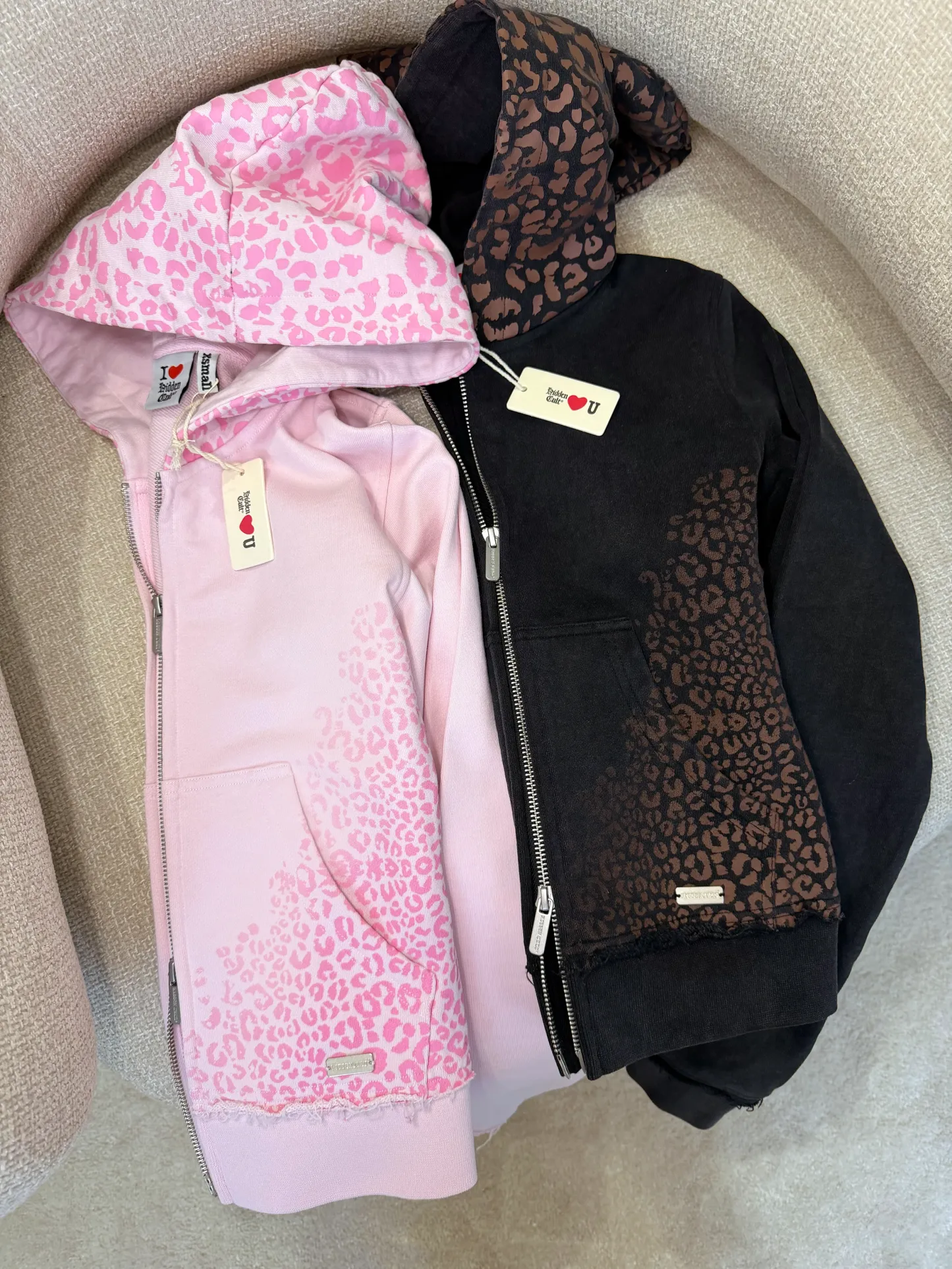 HIDDEN CULT® Vintage Black Cheetah Zip Hoodie